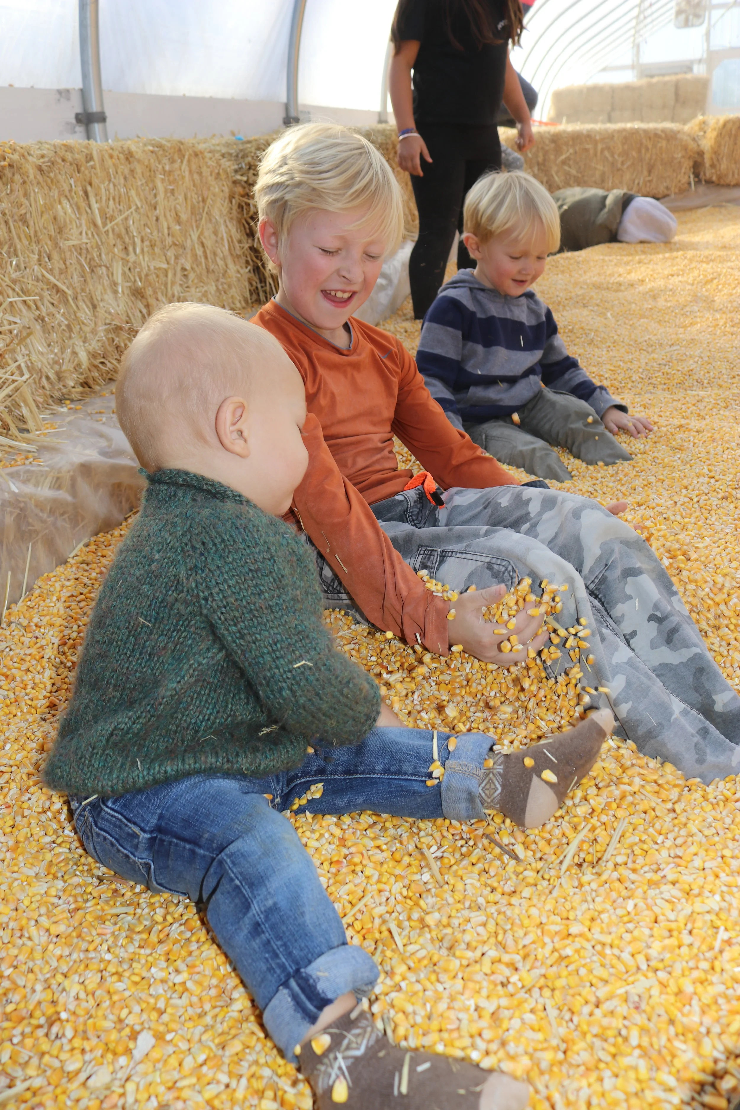 Kids activities; Bale Maze, Corn play area ( the boys had a blast!), Bale Pyramid