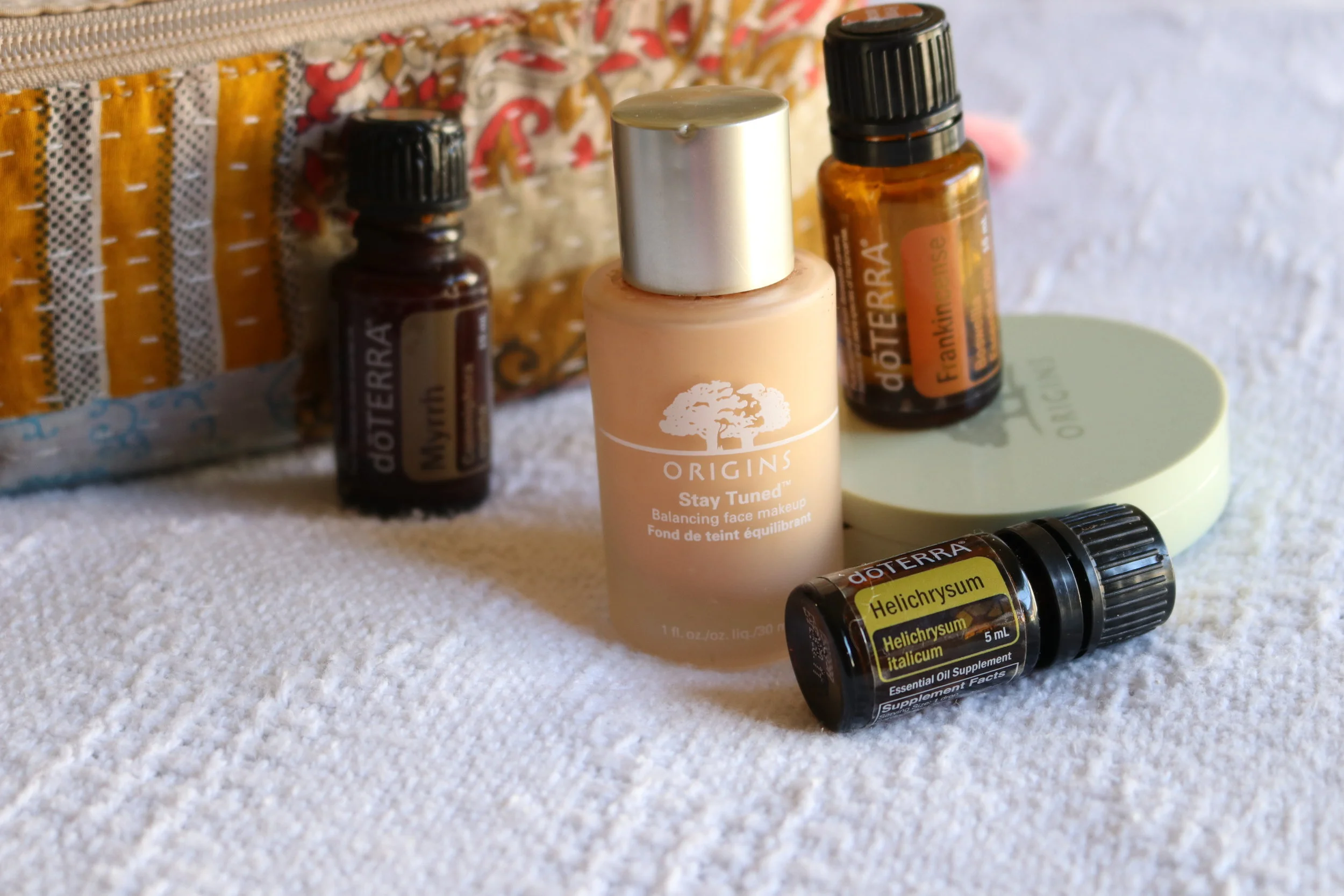 When I just get my foundation I always add a few drops of Myrrh, Frankincense and a drop of Helichrysum essential oils. And I gotta say - Origins is my all time favorite foundation. I love a natural looking foundation, that evens out skin tone, but I do not love a caky, "makeup" looking foundation - if you know what I mean. ?.